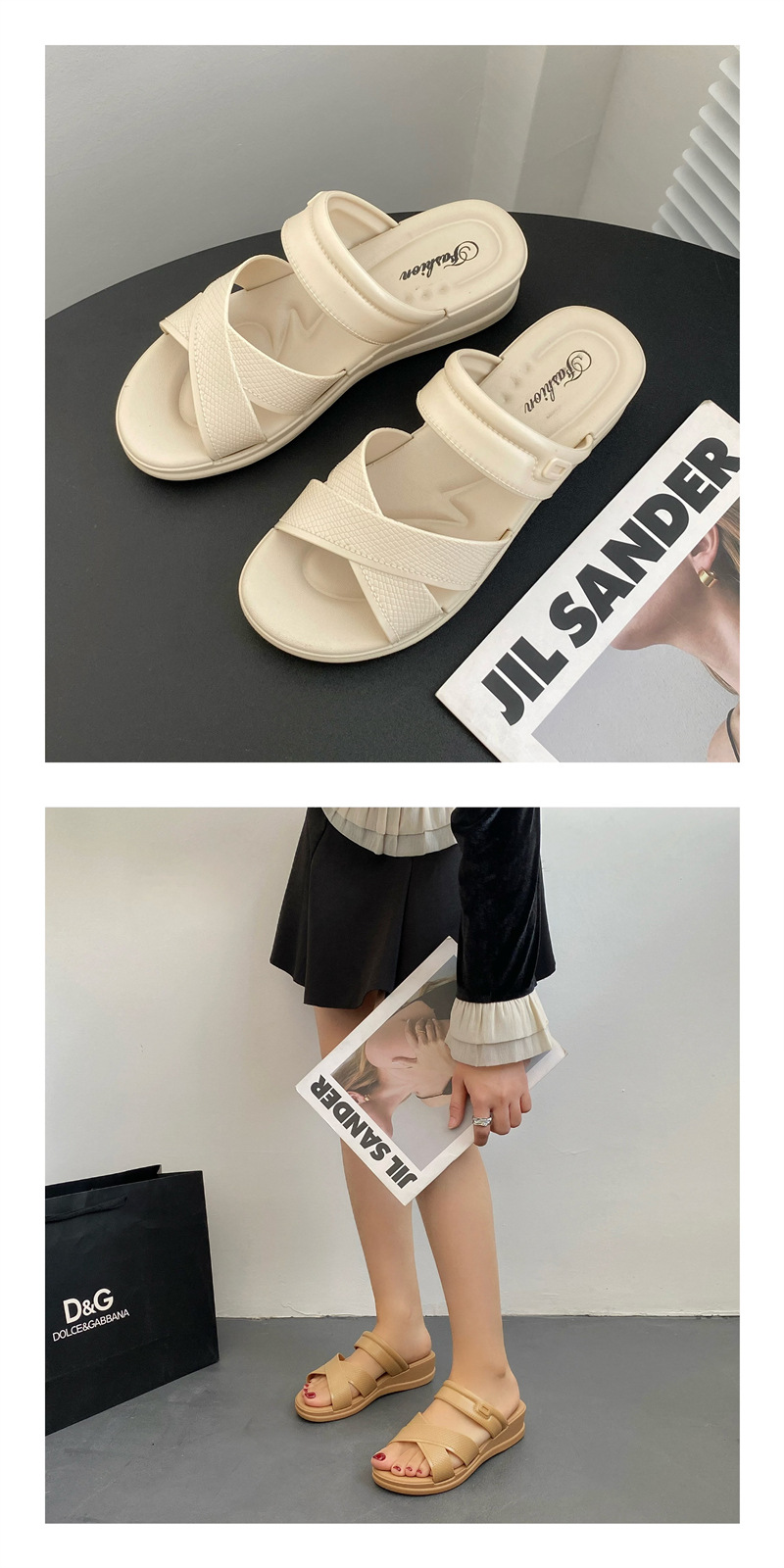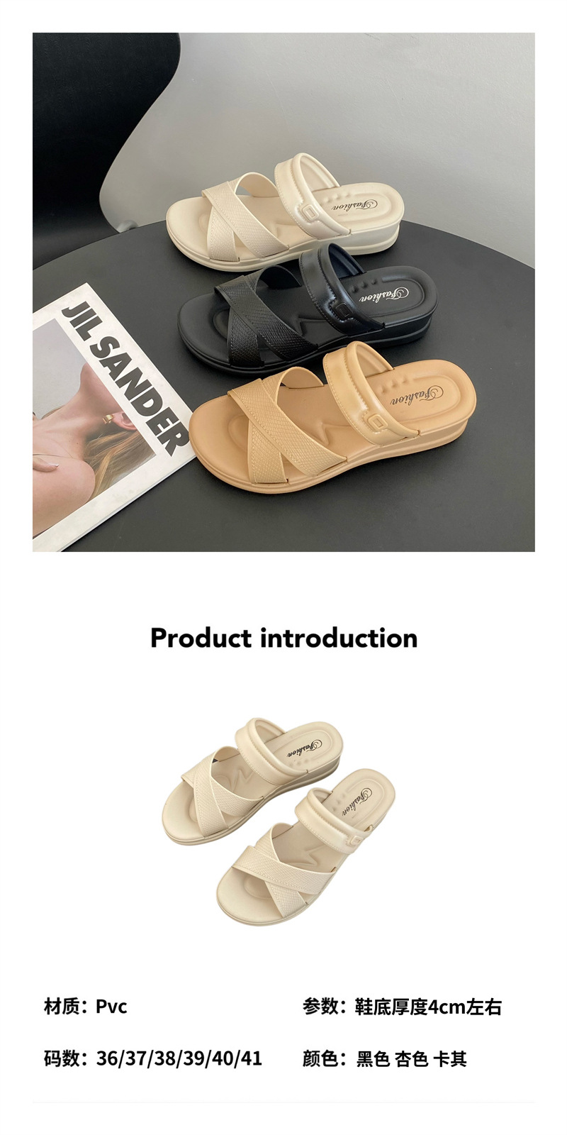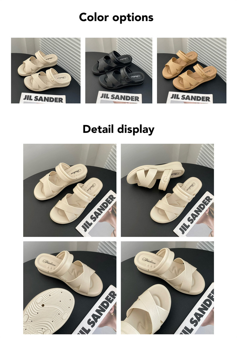 • 合利鲨新款夏季拖鞋厚底交叉带纯色日常外穿休闲沙滩女鞋一字拖鞋
