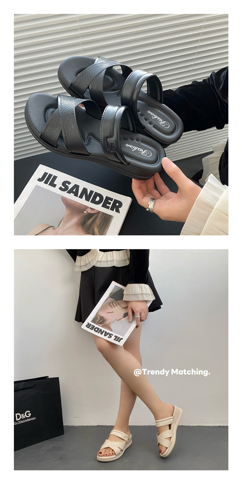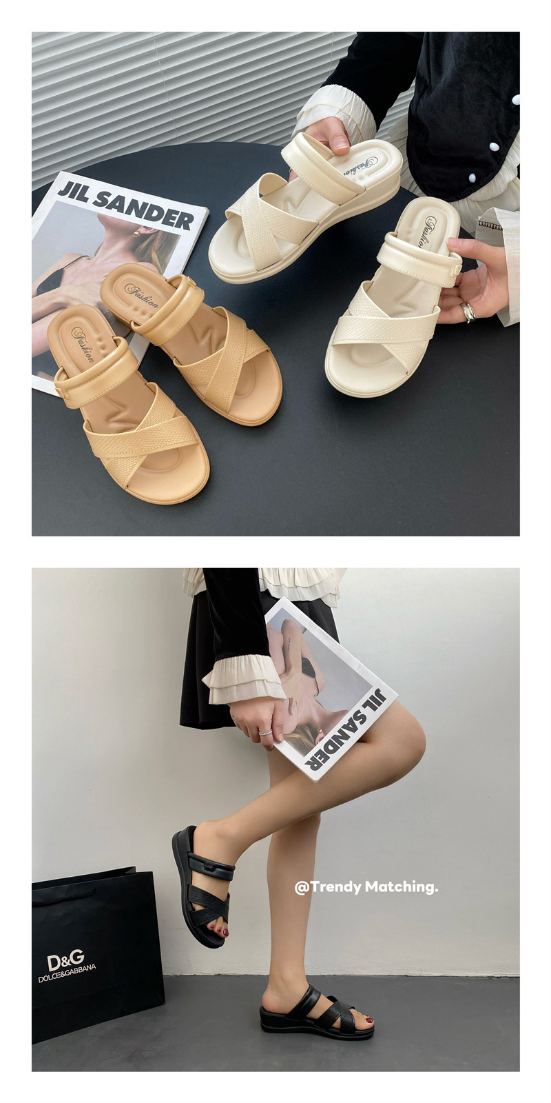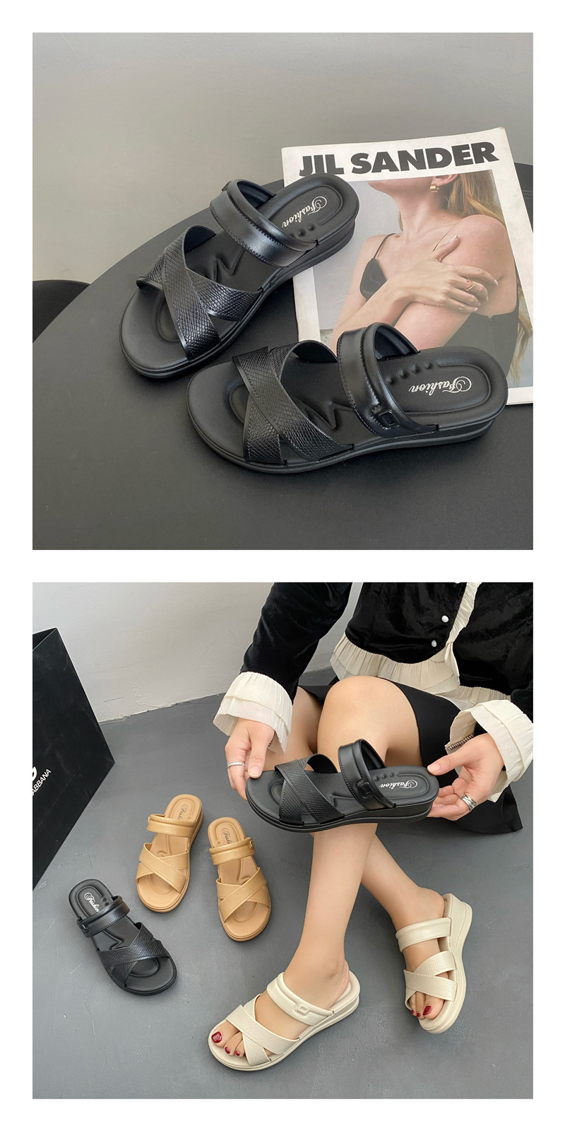 • 合利鲨新款夏季拖鞋厚底交叉带纯色日常外穿休闲沙滩女鞋一字拖鞋