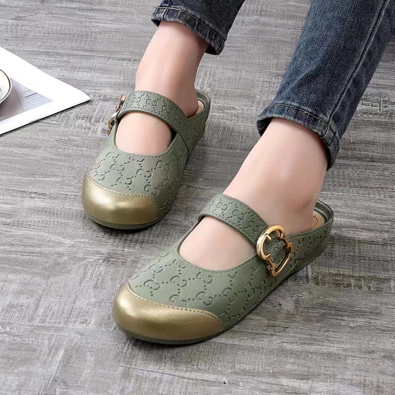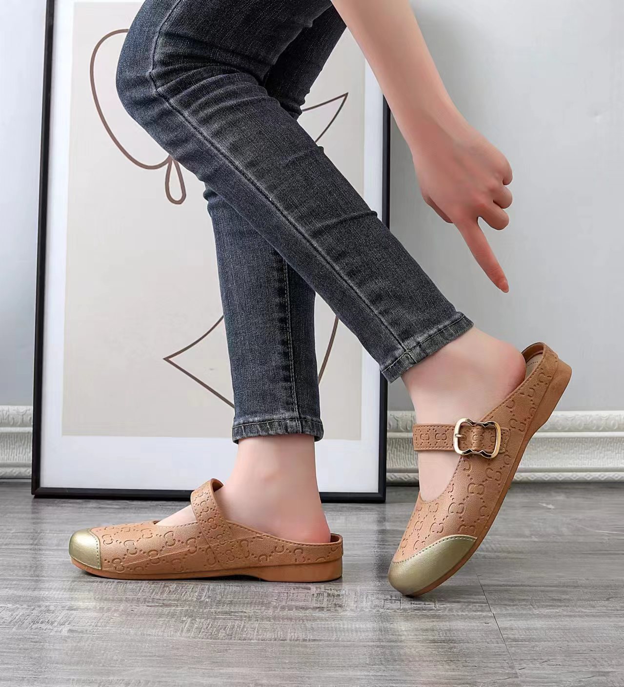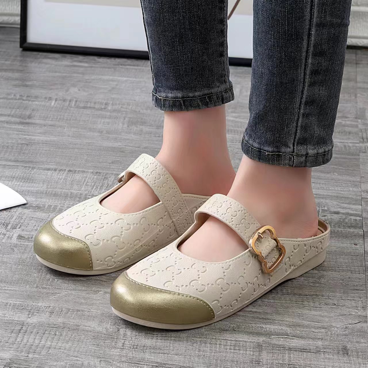 • 合利鲨时尚拼色包头拖鞋女士夏季外穿休闲凉鞋平底居家新款女鞋